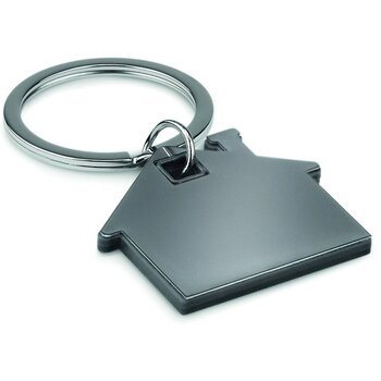 Huisvormige sleutelhanger van roestvrijstaal en ABS.