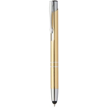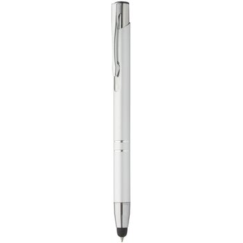 Aluminium balpen met touchscreen tip. Blauw schrijvend.