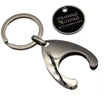 De Zabax Winkelwagenmunt Sleutelhanger is een praktische en stijlvolle accessoire voor aan de sleutelbos. Gemaakt van plastic materiaal. De witte houder komt met een muntje in een kleur naar keuze. Je kunt de winkelwagenmuntjes bedrukken op zowel de houder als het muntje. Perfect als handig en promotioneel relatiegeschenk.