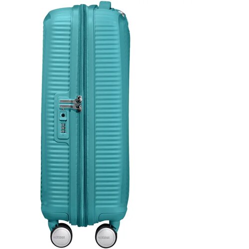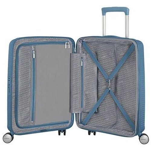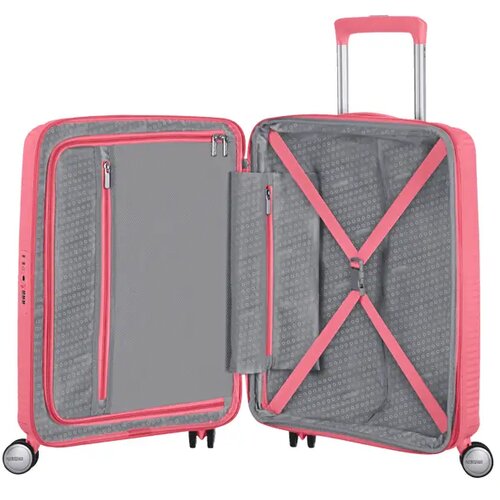 De Soundbox-collectie is een van de meest in het oog springende ooit van American Tourister. Met de speelse cirkels met contrasterend mat en glanzend oppervlak sta je gegarandeerd in de schijnwerpers, waar je ook heen reist. De uitbreidbaarheid, het vaste TSA-slot en de handige organisatiemogelijkheden binnenin maken van deze koffer jouw ultieme reispartner! Past binnen de afmetingen voor handbagage van heel wat luchtvaartmaatschappijen, zoals Ryanair, easyJet en Norwegian! American Tourister geeft 3 jaar wereldwijde (beperkte) garantie op deze collectie. De Spinner 55 EXP. is de lichtgewicht uitbreidbare handbagage koffer uit de collectie die geschikt is voor een korte vakantie, weekendje weg of citytrip. Het ruime hoofdcompartiment is opgedeeld in 2 delen die beide uitgerust zijn met gekruiste inpakriemen en gescheiden zijn door een tussenschot wat voorzien is van 2 ritsvakken om spullen gescheiden op te kunnen bergen. Het hoofdcompartiment is dankzij de slimme dubbele rits in volume uitbreidbaar waardoor extra bagage op de terugreis geen probleem is. Optimaal comfort is gegarandeerd door de 4 soepel rollende dubbele wielen, handvatten aan zij-en bovenkant en een dubbele trekstang. Je spullen zijn veilig opgeborgen doordat de koffer is voorzien van een verzonken TSA slot. Personalisatie is mogelijk in de ronde logoplaat op de voorzijde van de schaal door middel van een dominglabel.