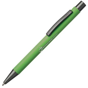 BARBADOS soft touch balpen met `spiegel` lasergravering, blauwschrijvend