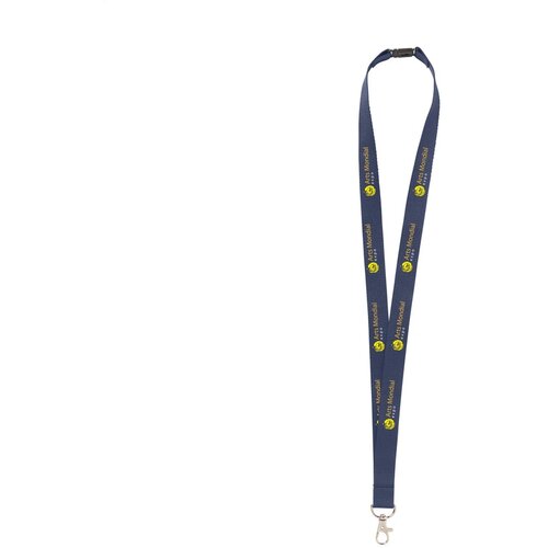 Polyester lanyard met metalen karabijnhaak en veiligheidssluiting.