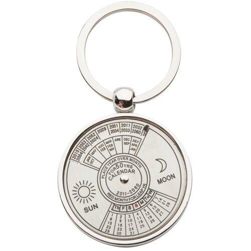 Eeuwig durende kalender in sleutelhanger. Geleverd in zwarte geschenkverpakking.