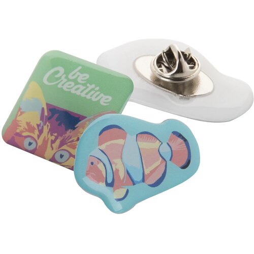 Metalen pin in eigen vorm met een stevige vlindersluiting. Kies zelf de vorm, bijvoorbeeld een logo, tekst of symbool dat bij jouw bedrijf of campagne past. Het maximale formaat is 9 cm². Je kunt de pin voorzien van epoxy doming in full colour, wat een vergrotend effect geeft en de details extra laat opvallen. De Metalen pin in eigen vorm is ideaal voor giveaways, evenementen of merchandising. Bestel snel vanaf 100 stuks en maak indruk op klanten en relaties.