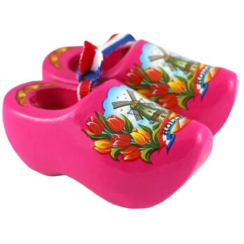 Pair wooden shoes van 6 cm. Levebraar in vele kleuren met verschillende designs. Snel te leveren met logo. Vraag naar de mogelijkheden/prijzen voor een meerkleuren druk of full colour logo's d.m.v. een transfer.