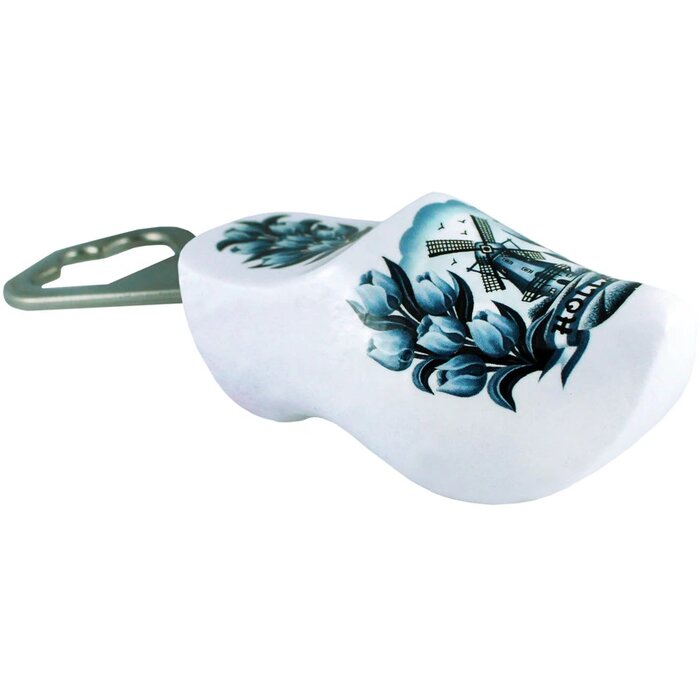 Een klompje met een flesopener. Leverbaar in verschillende kleuren ook met logo te verkijrgen en snel te bestellen. Vraag naar de mogelijkheden/prijzen voor een meerkleuren druk of full colour logo's d.m.v. een transfer.