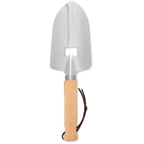 Tuinschep van RVS met houten handvat en geïntegreerde flesopener.