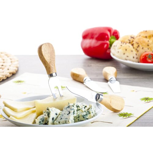 De kaas messenset bevat vier roestvrijstalen messen met een houten handvat. De kaas messenset is ideaal voor liefhebbers van kaas die nét dat beetje extra willen. Dit set wordt geleverd in een zwarte geschenkdoos van 190×160×23 mm. Laat één of alle messen graveren op het handvat voor een persoonlijk tintje. Wil je het extra speciaal maken? Laat dan ook de geschenkdoos bedrukken voor een complete presentatie.