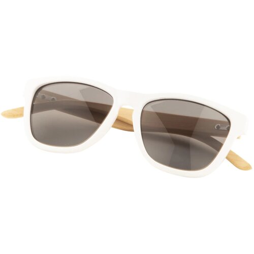 De gekleurde zonnebril met bamboe pootjes biedt UV400 bescherming. Heeft een kunststof frame dat verkrijgbaar is in diverse kleuren. De pootjes zijn gemaakt van natuurlijk bruin bamboe. De pootjes kunnen bedrukt of gegraveerd worden met jouw eigen ontwerp. Ook geschikt voor individuele personalisatie. De gekleurde zonnebril met bamboe pootjes wordt geleverd in een kraftpapier doos.