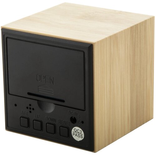 Bamboe wekker is een digitale klok met thermometer en wit LED-display. Werkt op USB (meegeleverd) of 3 AAA-batterijen (niet meegeleverd) en is geschikt voor thuis of kantoor. Je kunt de bamboe wekker laten bedrukken of graveren op de boven- en zijkanten met jouw naam, logo of ontwerp. Het is zelfs mogelijk om de wekkers per stuk te personaliseren, bijvoorbeeld met de naam van jouw klant of relatie. Bestel snel of vraag een offerte op.