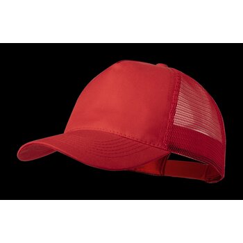 Baseballpet met 5 panelen, achterkant van mesh en verstelband van kunststof, polyester.