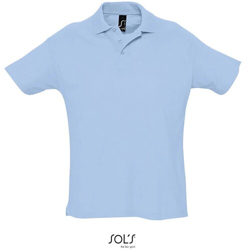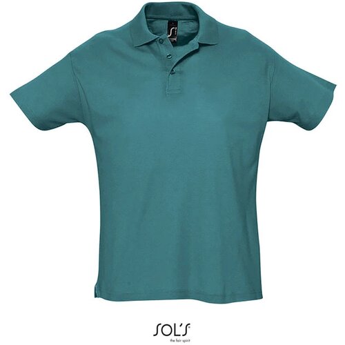 SOL'S SUMMER II Heren Polo 170g/m². Product met een uitstekende prijs-/kwaliteitverhouding. Breed assortiment kleuren. 100% gekamd katoen geribde kraag. Verstevigingsband in de nek. Versterkte knoopsluiting. 3 knoopsluiting in bijpassende kleur. Recht afgewerkte onderkant. Met zijsplitjes met zijnaad.