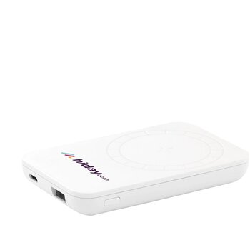De magnetic recycled powerbank (5.000 mAh) klik je eenvoudig magnetisch achter op je smartphone voor draadloos laden. Dankzij 17 hoogwaardige N52H-magneten ligt je toestel altijd op de juiste oplaadpositie. De magnetic recycled powerbank (5.000 mAh) is gemaakt van gerecycled ABS dat RCS-gecertificeerd is. Je kunt de behuizing laten bedrukken (in full colour), ook individuele personalisatie is mogelijk.