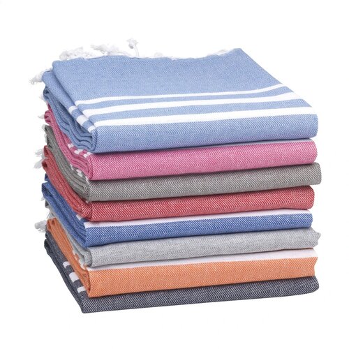 De Oxious hammam handdoek gemaakt van 50% Oekotex gecertificeerd katoen en 50% gerecycled industrieel textielafval (140 g/m²). De Oxious hammam handdoek is handgemaakt door lokale vrouwen in een dorpje in Turkije, met oog voor milieu en sociale waarden. Gebruik hem als shawl, bankkleed of handdoek. Laat de hammam handdoek borduren of bedrukken met jouw eigen ontwerp. Optioneel verpakt in een kraft envelop of sleeve.