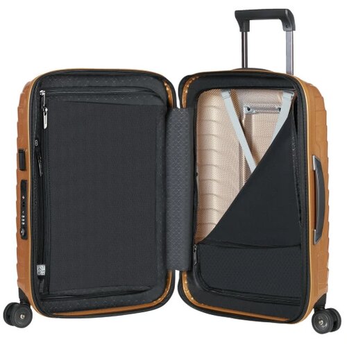 Ontdek een nieuwe manier van reizen met Proxis, de koffer voor topprestaties. De schalen zijn vervaardigd uit Roxkin™, een exclusief materiaal uit meerdere lagen dat Samsonite zelf heeft ontwikkeld. Het neemt opnieuw zijn oorspronkelijke vorm aan en is opvallend stevig, veerkrachtig en licht. De koffer springt in het oog door zijn geraffineerde design en is speciaal ontworpen om aan al jouw behoeften te voldoen. Als je voor Proxis kiest, profiteer je met het nieuwe wecare programma van Samsonite bovendien van uitstekende ondersteuning en fantastische voordelen tijdens én na de garantieperiode. De collectie is ontwikkeld en geproduceerd in Europa. Samsonite geeft maar liefst 10 jaar wereldwijde (beperkte) garantie op deze collectie. De Spinner 55 EXP uit deze revolutionaire collectie is een lichtgewicht handbagage koffer die uitbreidbaar is dankzij de slimme dubbele rits. Het interieur is onderverdeeld in twee compartimenten die beide voorzien zijn van gekruiste inpakriemen en worden gescheiden door een tussenschot wat voorzien is van een ritsvak en een vak voor je powerbank. Dankzij de geïntegreerde USB-poort is het opladen van je apparaten onderweg geen enkel probleem meer. Optimaal comfort is gegarandeerd dankzij de 4 soepel rollende dubbele wielen, een dubbele trekstang en handvatten aan zij-en bovenkant. Dankzij het geïntegreerde TSA slot zijn al je spullen opgeborgen. Met behulp van het nieuwe Samsonite Wecare programma is de koffer na aanschaf en registratie gratis te personaliseren en loopt ook de volledige garantie voor deze collectie digitaal. Is de koffer aan het einde van zijn levenscyclus? Dan kan deze via Samsonite Wecare gratis gerecycled worden. Personalisatie is mogelijk op diverse posities door middel van een bedrukking of dominglabel.