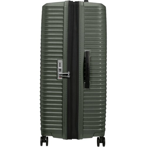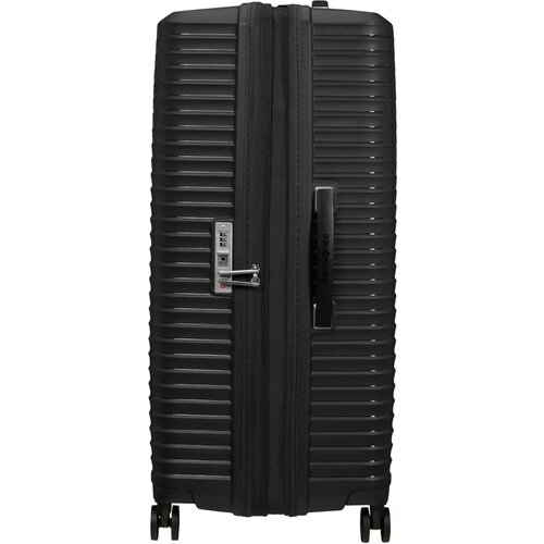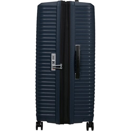 Kies voor comfort met Upscape! Geniet van zorgeloos reizen dankzij het lichte gewicht, de schokabsorberende suspensie wielen en de verwijderbare en wasbare voering. De handige uitbreidbaarheid en de opvallende zilveren details zorgen voor extra reisplezier. Samsonite geeft 5 jaar wereldwijde (beperkte) garantie op deze collectie. De Spinner 81 EXP. is de grote ruimbagage koffer uit de collectie. Het interieur is onderverdeeld in 2 ruime compartimenten waarvan het onderste is uitgerust met inpakriemen om kleding netjes op zijn plaats te houden tijdens je reis. De voering is gemaakt van gerecyclede PET flessen en is uitneembaar zodat deze gewassen kan worden. Zo blijft het interieur van je koffer altijd schoon, wel zo hygiënisch! Het interieur beschikt over een ritsvak van netstof waarmee je spullen gescheiden kan opbergen. Dankzij het geïntegreerde TSA slot kunnen je spullen veilig opgeborgen worden. Optimaal comfort is gegarandeerd dankzij de 4 schokabsorberende dubbele wielen (die veel minder geluid maken), een dubbele trekstang en handvatten aan zij-en bovenkant.