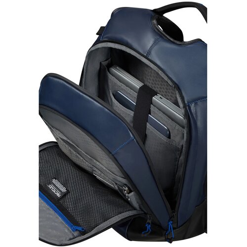 Ecodiver bepaalt de nieuwe standaard in het casual assortiment van Samsonite. Deze collectie combineert functionaliteit met een stijlvol design en is ontworpen met oog voor veiligheid en comfort. Gebruikmakend van gerecycleerde materialen, past Ecodiver perfect bij Samsonites wereldwijde strategie ‘Our Responsible Journey’. De waterafstotende coating maakt van deze collectie de perfecte keuze voor alle avonturen, in de natuur of in een stad. Samsonite geeft 2 jaar wereldwijde (beperkte) garantie op dit model. De Laptop Backpack M is de middenmaat laptoprugzak uit de collectie. Het ruime hoofdcompartiment is geschikt voor A4 formaat documenten en voorzien van een laptop-en tabletvak. Aan de voorzijde is de tas voorzien van een voorvak met ritssluiting wat is uitgerust met een compleet zakelijk organisatie paneel met diverse insteekvakken en een ritsvak van netstof waardoor spullen overzichtelijk opgeborgen kunnen worden. Op het voorvak is nog een verticaal ritsvak te vinden voor het opbergen van de kleinste spullen die je altijd binnen handbereik wilt houden. Aan de zijkant is de tas voorzien van een flessenhouder die netjes weggewerkt is achter een rits. Optimaal comfort is gegarandeerd dankzij het gevoerde rugpaneel, ergonomische schouderriemen, comfortabel handvat aan bovenzijde en een in hoogte verstelbare borstriem. Dankzij de smart-sleeve aan de achterkant is de tas gemakkelijk te bevestigen aan de trekstang van een koffer of reistas op wielen en de reflecterende details zorgen ervoor dat je extra opvalt in het donker. Safety First!