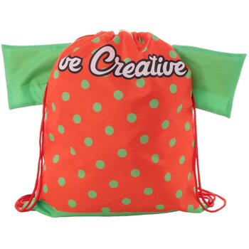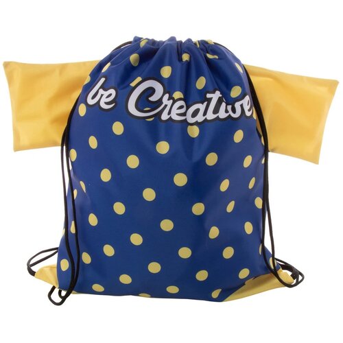Custom made T-shirtvormige tas met trekkoord en gekleurde touwtjes, 190T polyester. Met all-over sublimatiebedrukking. MOQ: 50 stuks.