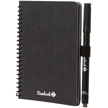 Deze hardcover Bambook heeft een A4 formaat en is gemaakt van een massieve plaat bamboe en voorzien van een elastiek. In de vooromslag van de hardcover kan jouw logo worden gevraveerd. Je kunt de Bambook ook personaliseren door je naam op de cover te graveren. Bambook heeft 20 vellen (40 kantjes). Het doel van Bambook is om papierverspilling en ontbossing tegen te gaan. Daarom is de Bambook ontwikkeld. Een uitwisbaar notitieboek, dat dus steeds hergebruikt kan worden.
