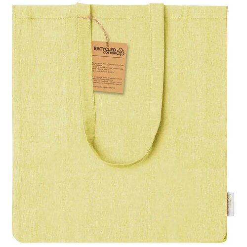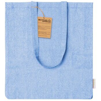Boodschappentas van gerecycled katoen met kruisje, lange hengsels en opvallend label van gerecycled katoen. 100% gerecycled katoen, 140 g/m².