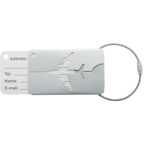 Dit aluminium bagagelabel is voorzien van een vliegtuigmotief en een stevig metalen touwtje. Aan de binnenkant van het label zit een kaartje voor NAW gegevens. Je kunt het label laten bedrukken of graveren, zodat jouw logo altijd opvalt. Maak je bagage uniek met deze praktische bagagelabels met logo. Ideaal als relatiegeschenk voor jouw klanten!