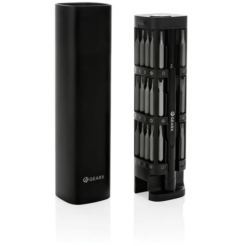 De ultieme hoogwaardige precisie schroevendraaierset bevat essentiële onderdelen voor het repareren van mobiele telefoons, tablets, pc's en andere items. De levensduur van de meeste elektronica kan eenvoudig worden verlengd met een eenvoudige reparatie die vaak online te vinden is. 46 stuks verpakt in een koffer gemaakt van RCS-gecertificeerd gerecycled aluminium. Totale gerecyclede inhoud: 22% op basis van het totale gewicht van het artikel. RCS-certificering garandeert een volledig gecertificeerde toeleveringsketen van de gerecyclede materialen. De set bevat een schroevendraaierhandvat en een pincet. De bits zijn magnetisch en zijn gemakkelijk in en uit de koffer te plaatsen."
