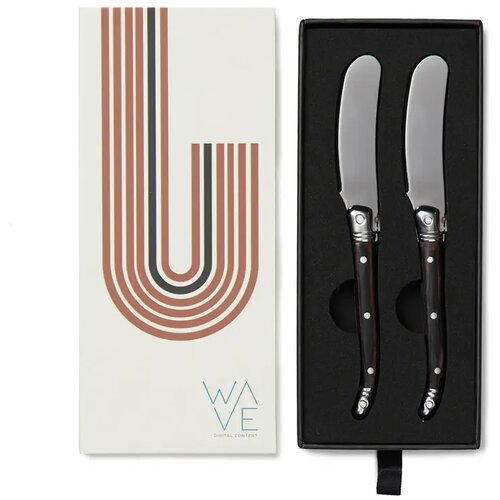 VINGA gigaro botermessen zijn ideaal voor het smeren van boter, jam of andere spreads op toast, muffins of bagels. De set bestaat uit twee hoogwaardige roestvrijstalen messen met stevige pakkahouten handgrepen die fijn in de hand liggen. De VINGA gigaro botermessen worden geleverd in een fraaie geschenkdoos, wat het ook tot een mooi cadeau maakt. Eén van de messen is te graveren, wat het net even iets extra's geeft.