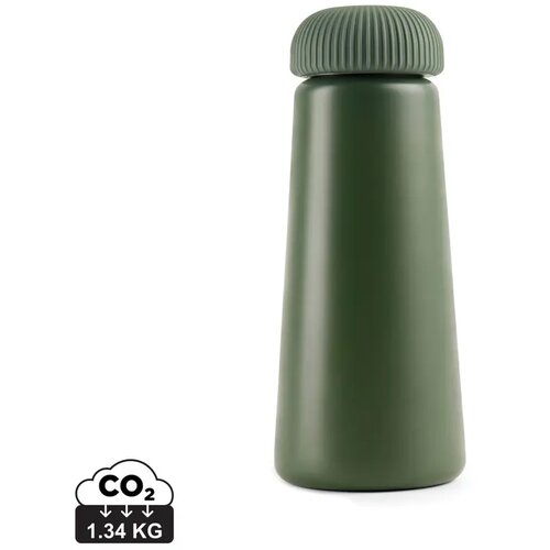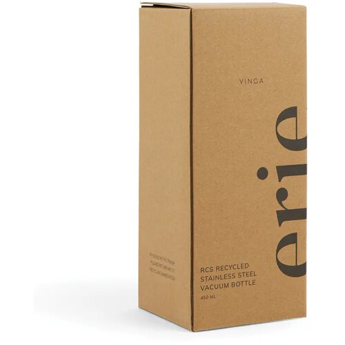 De VINGA RCS vacuümfles (450 ml) heeft een slimme kegelvorm en een dop die prettig in de hand ligt. Dankzij de dubbelwandige vacuümconstructie van gerecycled roestvrij staal blijven dranken tot 15 uur koud of 6 uur warm. De VINGA RCS vacuümfles bestaat voor 75% uit gerecycled materiaal. Leverbaar in groot aantal kleuren met zwarte dop. Je kunt de fles rondom laten bedrukken of graveren met jouw ontwerp. Wordt geleverd in een FSC-gecertificeerde kraft verpakking.