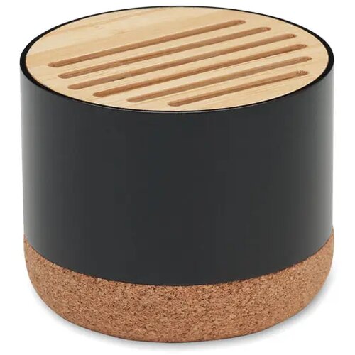 De kurk en aluminium luidspreker heeft een gerecyclede aluminium behuizing, een kurken onderkant en bamboe accenten bovenop. Met de oplaadbare 400 mAh Li-ION-batterij luister je tot 3 uur draadloos naar je favoriete muziek. Met 3W vermogen, 3 Ohm en 5V output. De kurk en aluminium luidspreker kun je rondom én bovenop laten bedrukken of graveren met een ontwerp naar keuze.