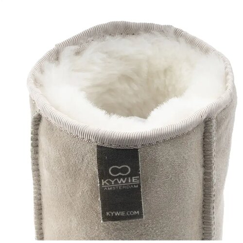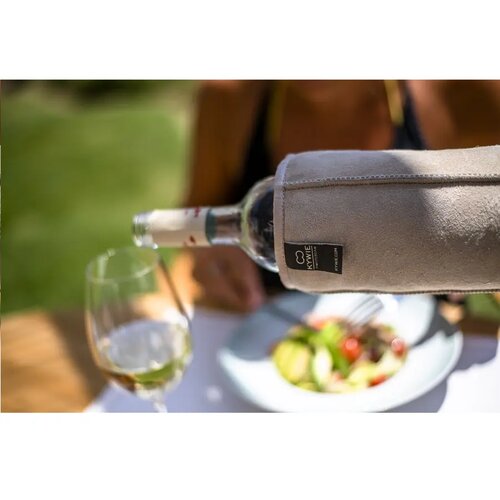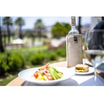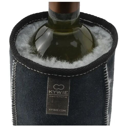 Deze wijnkoeler van het merk KYWIE® is handgemaakt van 100% natuurlijke schapenvacht van Texelse schapen. Deze koeler houdt je fles wijn of champagne écht koel. De fijne wollen binnenzijde is een natuurlijke bio-isolatie en houdt (koude) lucht vast in de koeler. Een voorgekoelde fles wijn blijft zo'n 4 uur koud. Deze bijzondere wijnkoeler is licht en opvouwbaar, beschermt de fles en ligt perfect in de hand. Bovendien is het materiaal vuilafstotend. Geschikt voor wijnflessen van 0,7 liter en waterflessen van 1 liter. Handig voor thuis en onderweg, in zomer en winter. Omdat de koelers handgemaakt zijn van echte, natuurlijke schapenvacht, zullen er lichte variaties zijn in kleur, textuur en markeringen. Dit draagt bij aan de schoonheid en het individuele karakter van elke koeler. Je kunt de wijnkoelers bedrukken op het katoenen zakje. Een slim, duurzaam en origineel geschenk. Dutch design. Made in Holland. Per stuk in katoenen zak.