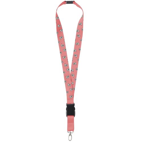 Lanyard van sterk geweven polyester. Met metalen karabijnhaak en kunststof veiligheidssluiting. Het onderste gedeelte is los te koppelen middels een kunststof buckle. Inclusief full colour sublimatiedruk. Made in Europe.