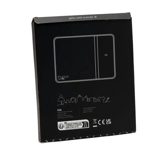 De recycled wireless charging muismat is een stijlvolle, multifunctionele muismat met draadloze oplader (10W). Gemaakt van gerecycled PU en RCS-gecertificeerd (30%). Navigeer soepel met je muis én laad je smartphone tegelijk op. Ook te gebruiken als telefoonstandaard. Compatibel met alle QI-geschikte apparaten (Android & iPhone). Wordt geleverd met USB-C kabel en handleiding. Formaat: 29,8 x 21 x 0,7 cm. Kleur: strak zwart, past op elk bureau. Te bedrukken in het midden met jouw logo. Gravering mogelijk aan de onderzijde. Maak indruk met de gegraveerde muismatten - praktisch, duurzaam en promotioneel sterk!
