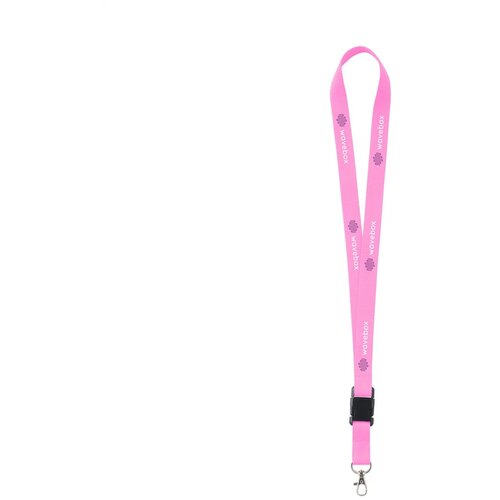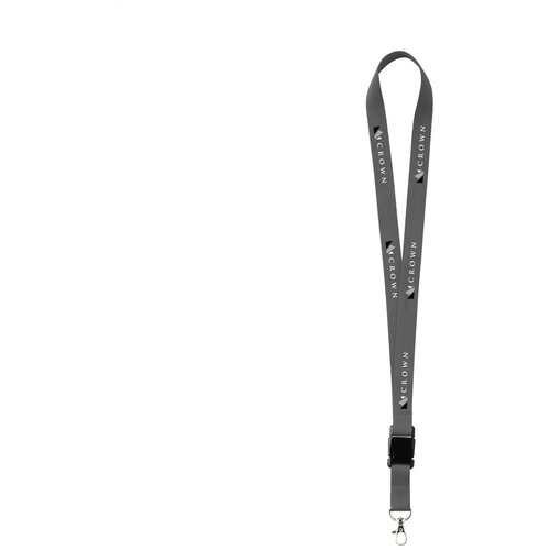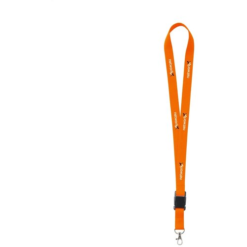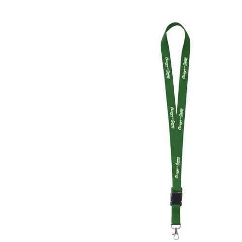 Lanyard van sterk geweven polyester met metalen karabijnhaak. Het onderste gedeelte is los te koppelen d.m.v. een kunststof kliksysteem.