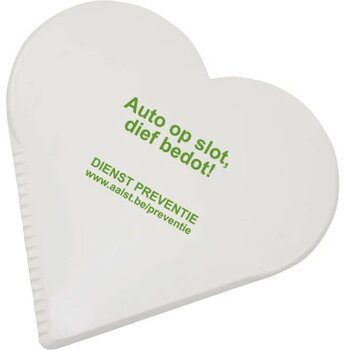 De IJskrabber Hart is een charmante en praktische toevoeging aan elke auto. Deze kunststof ijskrabber heeft een hartvorm en de afmetingen zijn 134 x 130 x 3 mm. Ze zijn verkrijgbaar in het wit en het rood. Wij kunnen deze hartvormige ijskrabbers laten bedrukken op de voorzijde, bijvoorbeeld met een persoonlijke boodschap of gewoon het logo van je bedrijf of merk! Het vrolijke ontwerp zorgt voor een unieke uitstraling en helpt je merk op een originele manier onder de aandacht te brengen, zelfs tijdens de koudste dagen van het jaar.