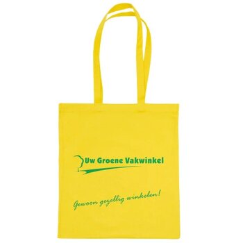 Katoenen tassen bedrukken doet u bij Lavista relatiegeschenken. Deze draagtas gekleurd 390 x 410 mm. met lange hengsel 25 x 700 mm. 100% biologisch katoen, 140 gram/m2 in vele kleuren te bedrukken.